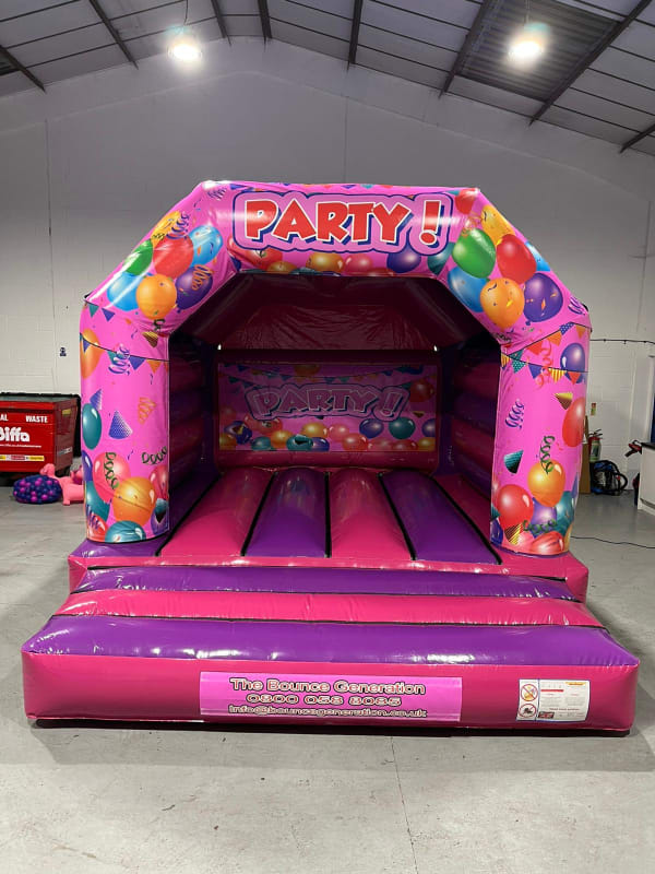 • Pink/Purple Party Theme 12ft Wide x 15ft Deep Inflatable Bouncy Castle