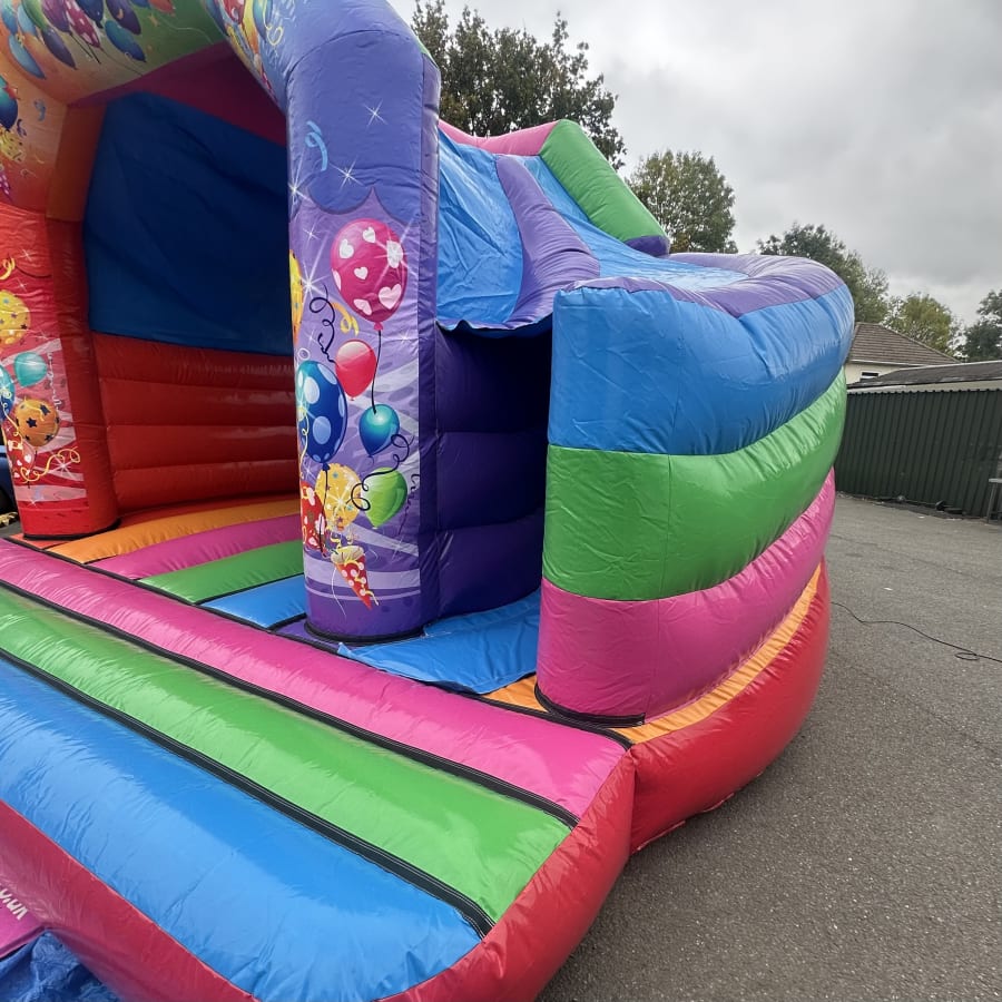 Multi Coloured Party with 180 Slide — Vibrant Bouncy Castle with Slide